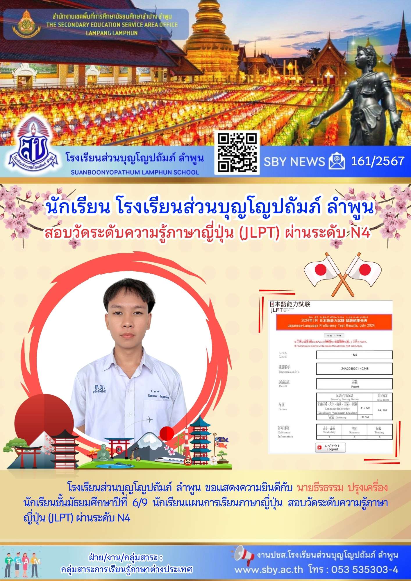 นักเรียนโรงเรียนส่วนบุฯ สอบวัดระดับความรู้ภาษาญี่ปุ่น (JLPT) ผ่านระดับ N4